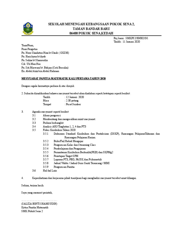 Februari 28 2022 contoh format surat panggilan mesyuarat. 432 gpk kokurikulum memaklumkan pengisian data pjask. Tarikh SaudaraSaudari Ahli Kelab Petanque SMK Perantau.